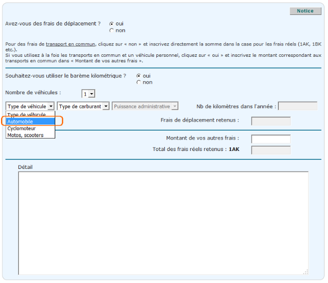 Si vous optez pour les frais réels, vous devez déclarer le montant de vos frais dans les cases 1ak à 1dk de votre déclaration de revenus, sans les soustraire du montant déclaré dans les cases. Le barème kilométrique pris en compte pour la.